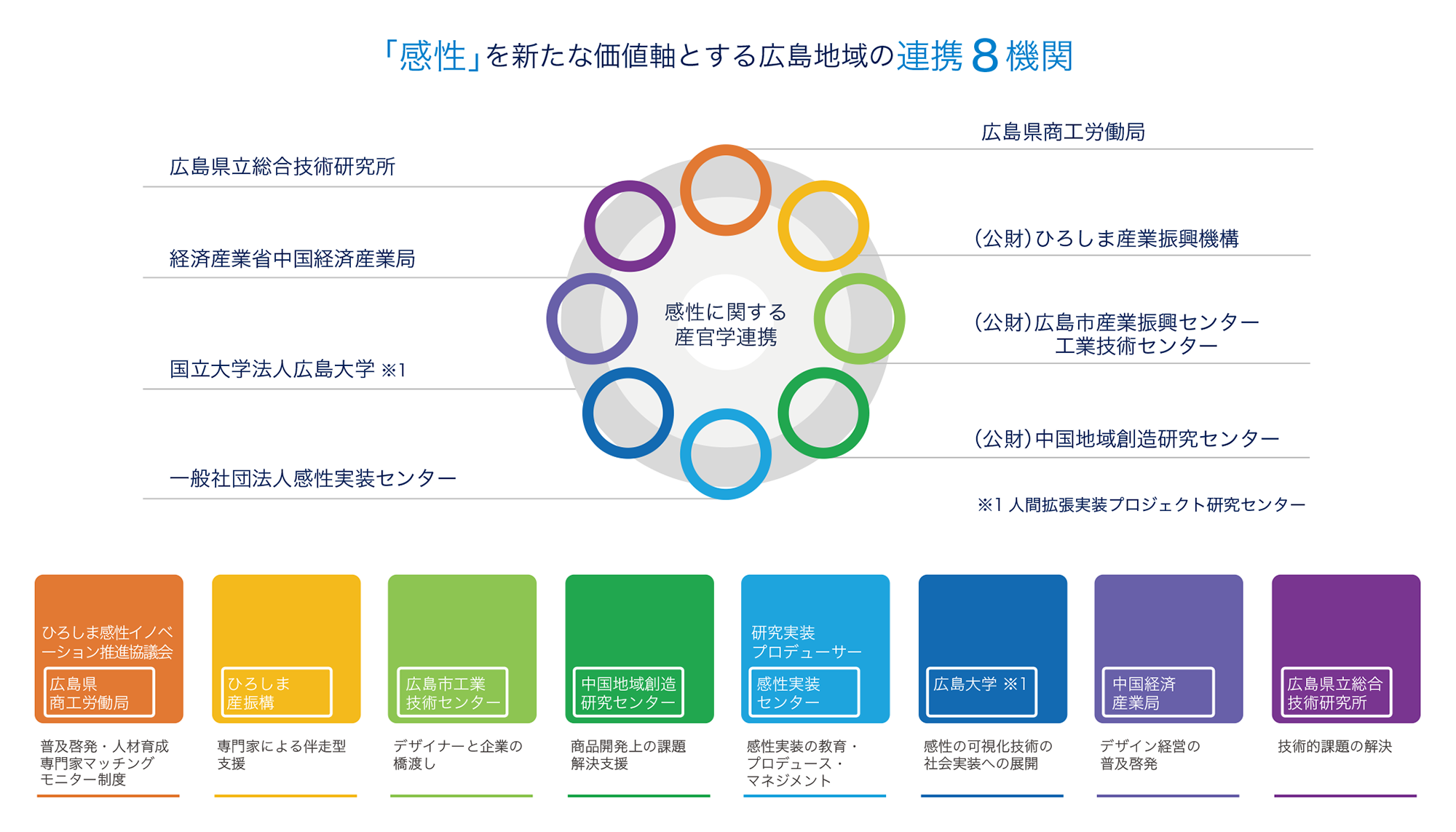 当センターは、ひろしま感性イノベーション推進協議会(事務局:広島県)の、研究実装プロデューサーもつとめています。